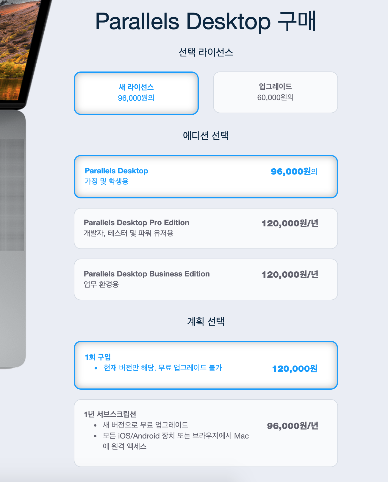 우선은 패러렐즈 웹사이트를 통해 설치 파일을 다운로드 받습니다.