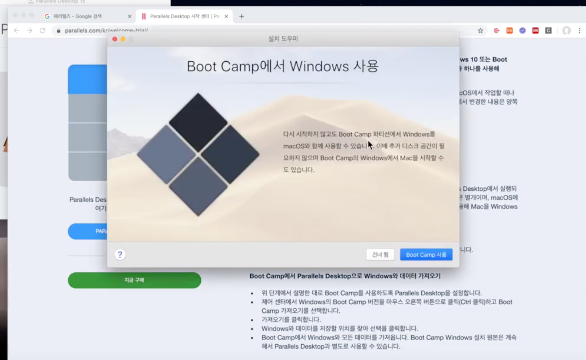 - 기존에 설치한 부트캠프를 이용한 방법