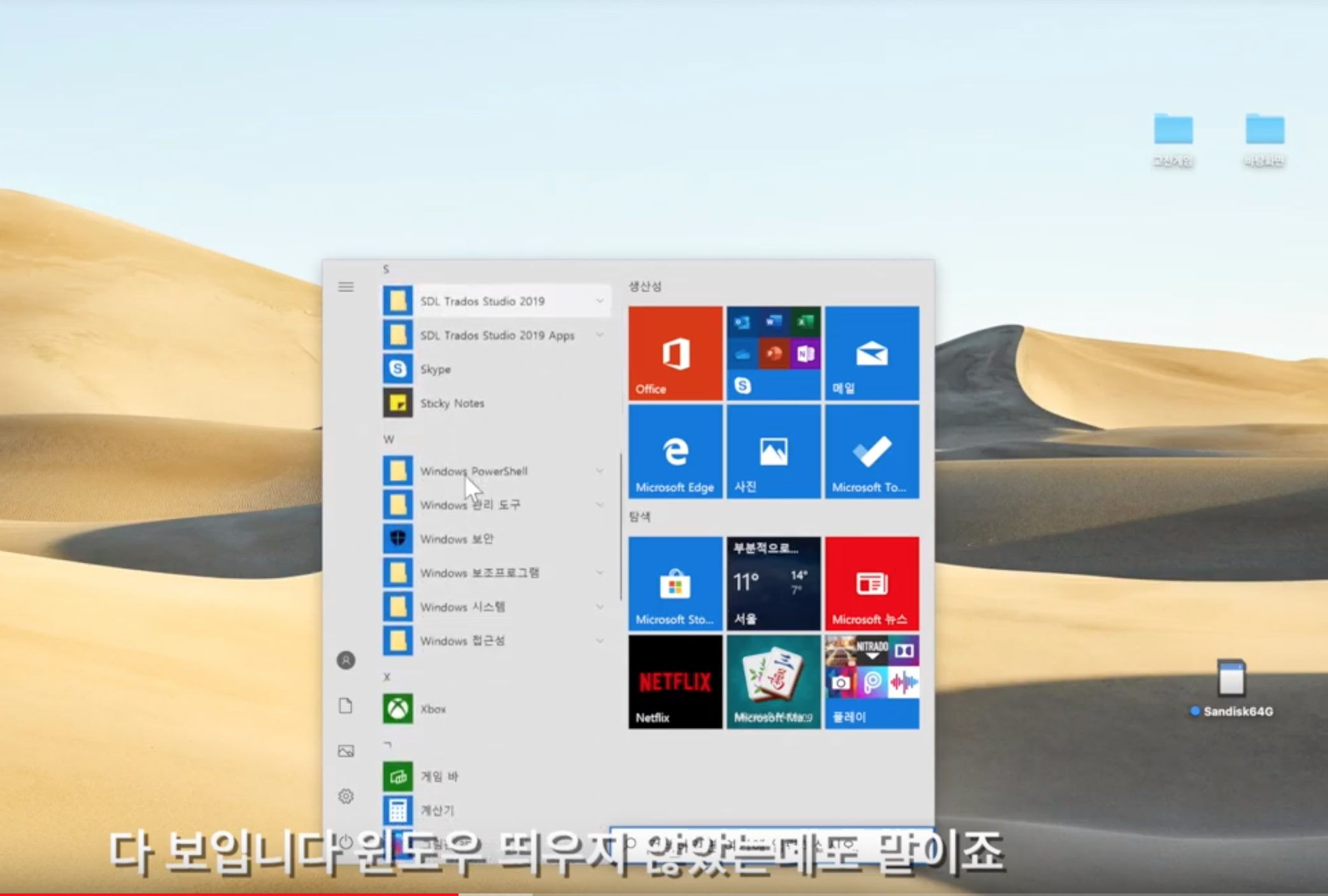 분명 맥 화면인데 윈도우의 시작메뉴를 띄웠습니다.