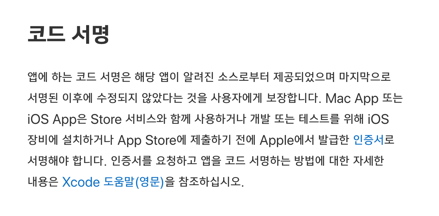그 안에는 앱 코드 사이닝을 위한 무수히 많은 과정이 함축되어있습니다.