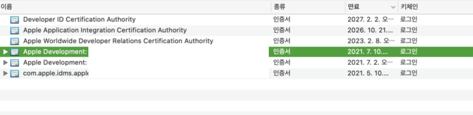 (무조건 있어야 된다. 그게 개발용이든, 배포용이든 애플스토어 인증서든 뭐든...)