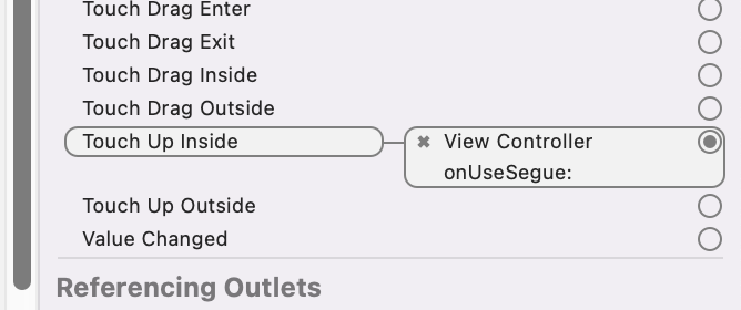 세그의사용2 버튼에 onUseSegue 라는 함수를 연결해주겠습니다.