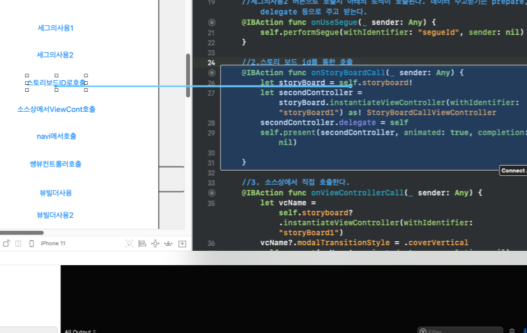 2021.11.09 - [HELLO_WORLD/애플_IOS] - IOS 다양한 화면 이동(컨트롤)방법 - Segue와 ViewController 사용