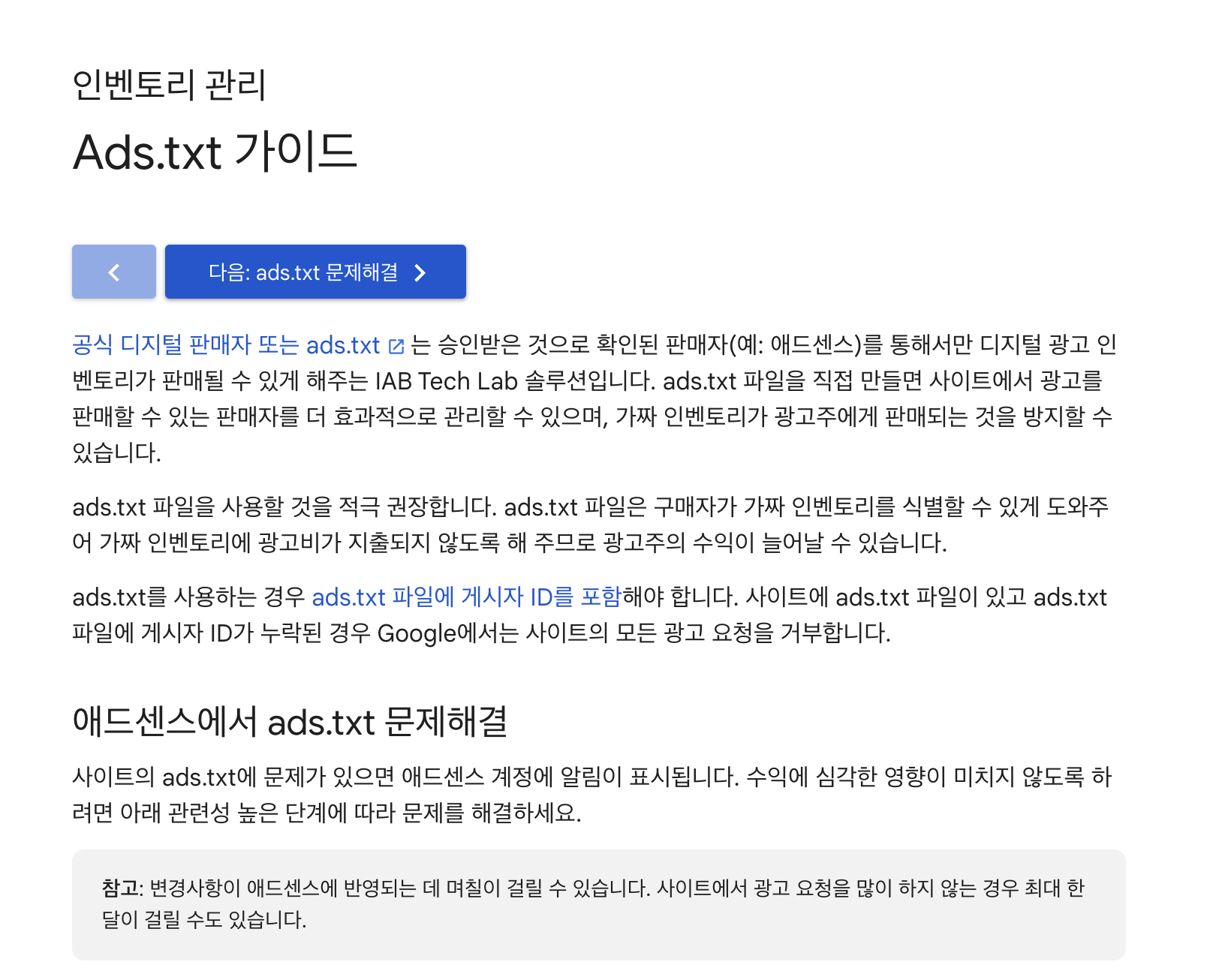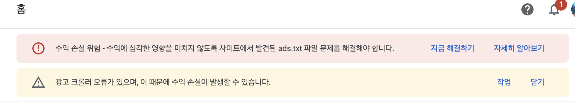 수일이 지나면 아마도 ads.txt 문제는 해결되있을것입니다.