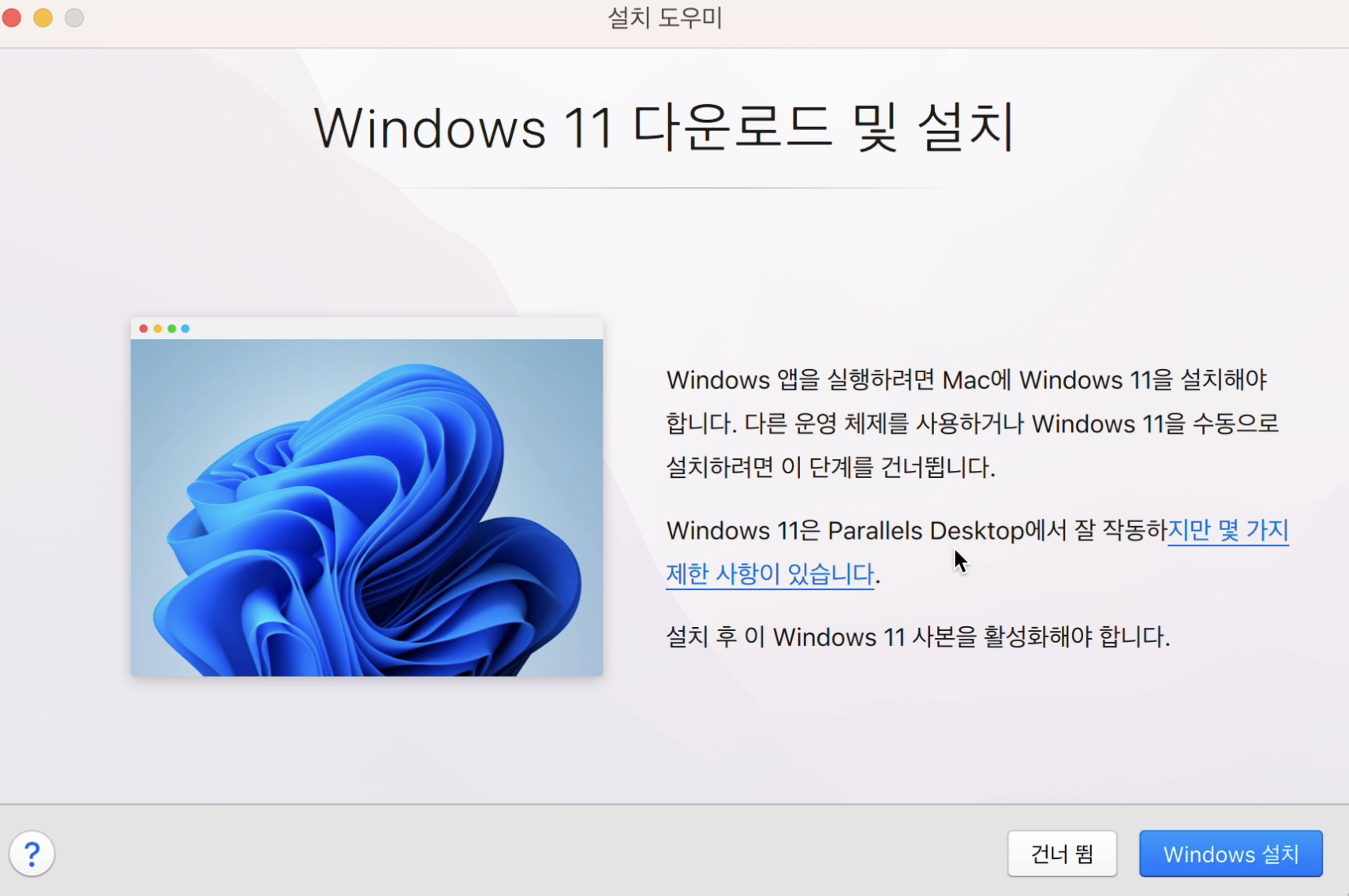 오늘은 패레럴즈 를 사용해서 윈도우를 설치해보겠습니다.