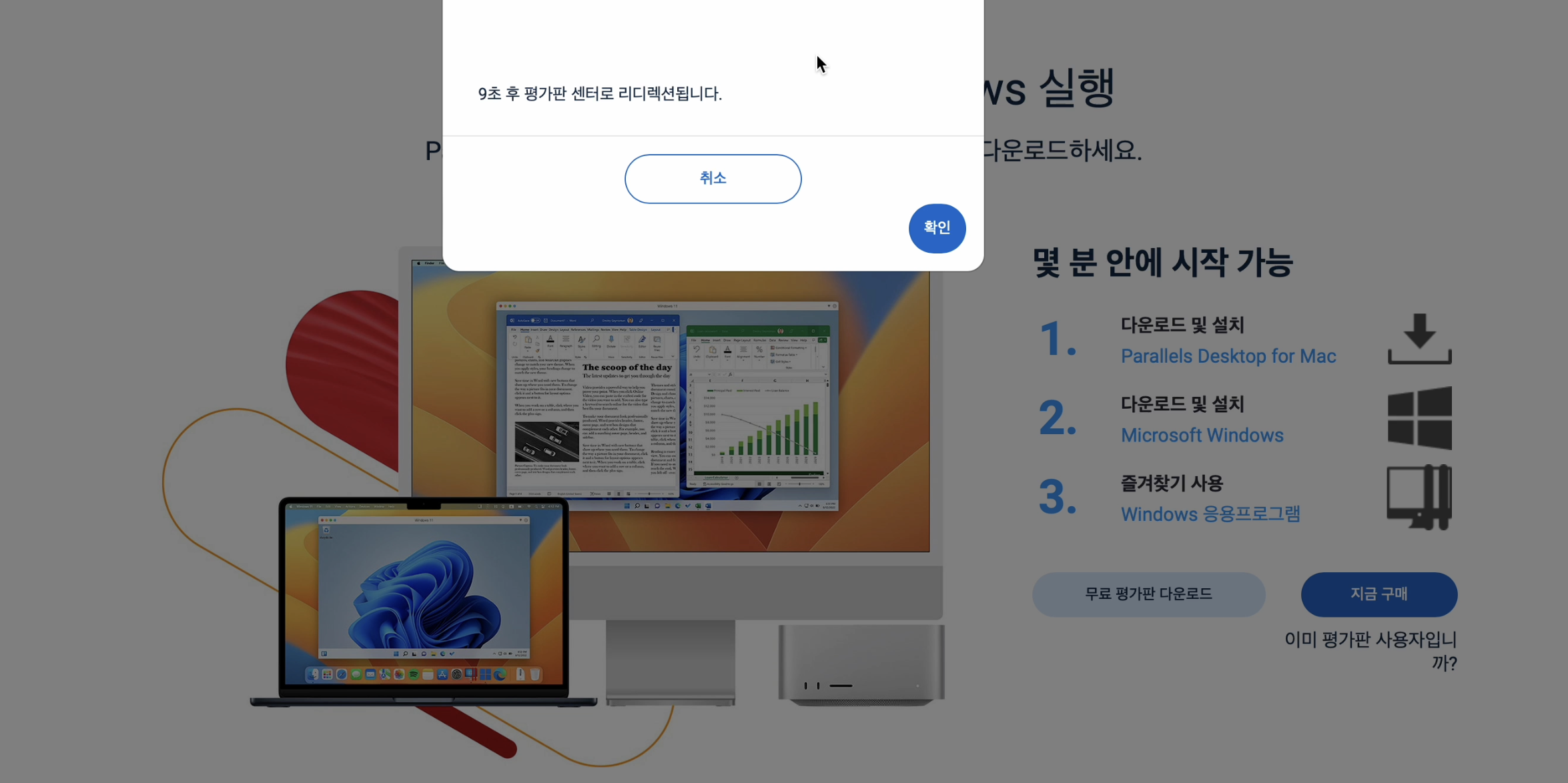 패러렐즈 사이트로 이동 후 설치 파일을 다운로드 받는다