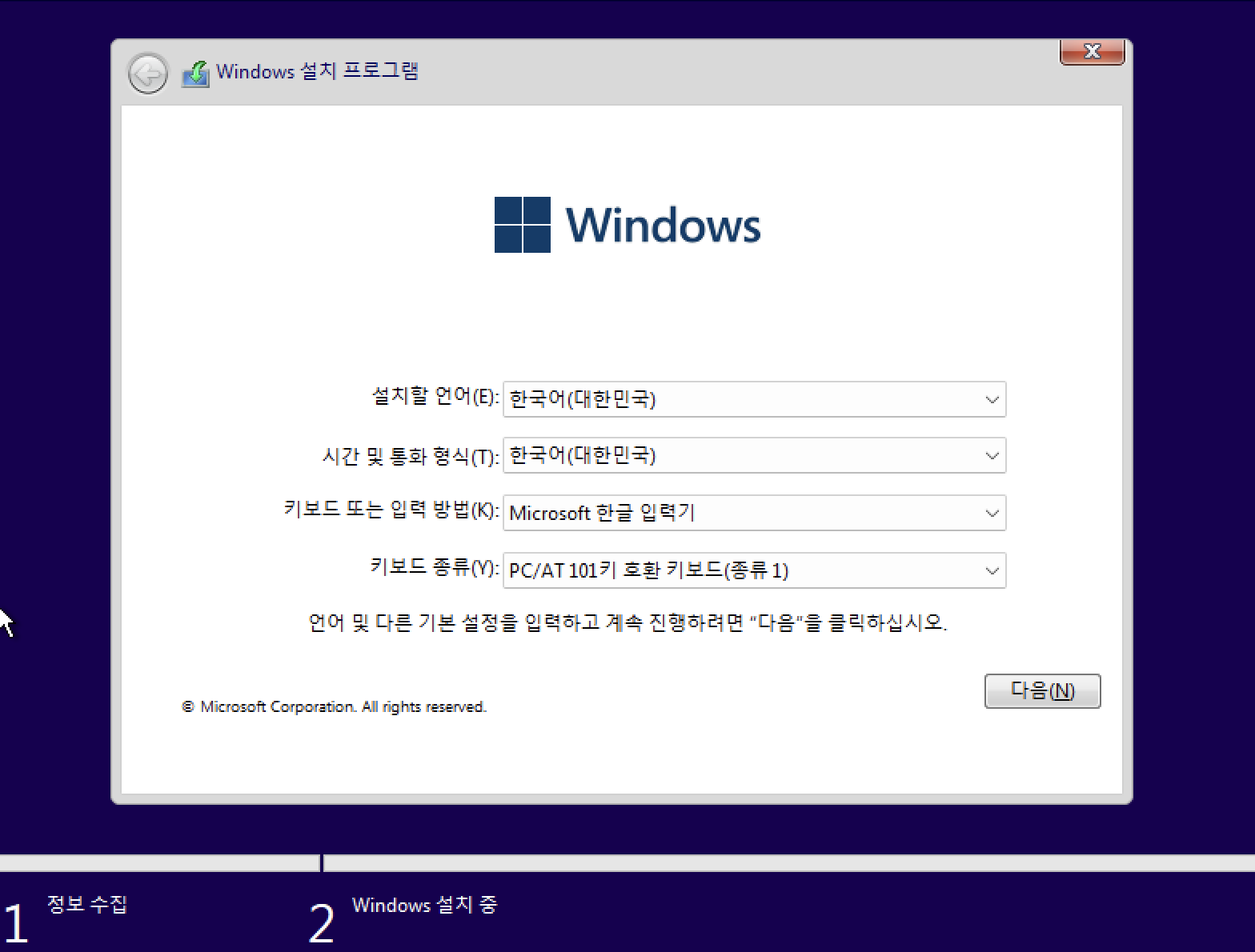 여기서 부터는 다들 아시는 윈도우 설치 설정입니다. 다음 다음 하시면 됩니다.