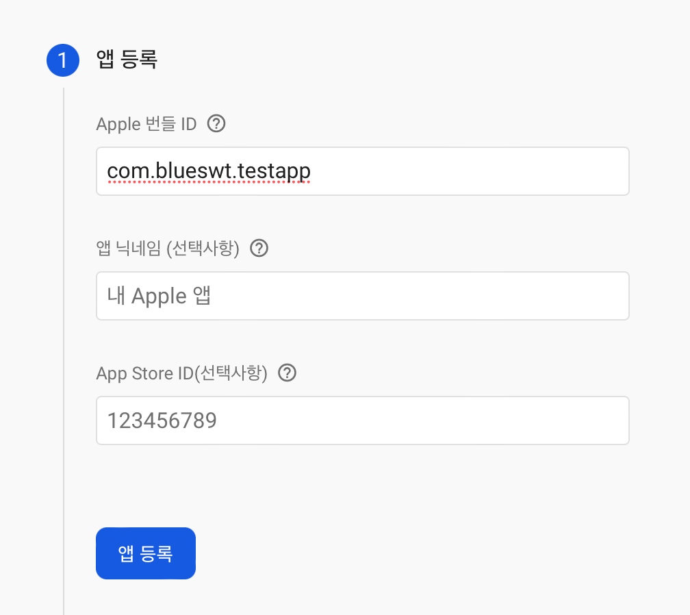 당연히 개발 프로젝트의 패키지명 혹은 번들 ID를 일치시켜주셔야 합니다.
