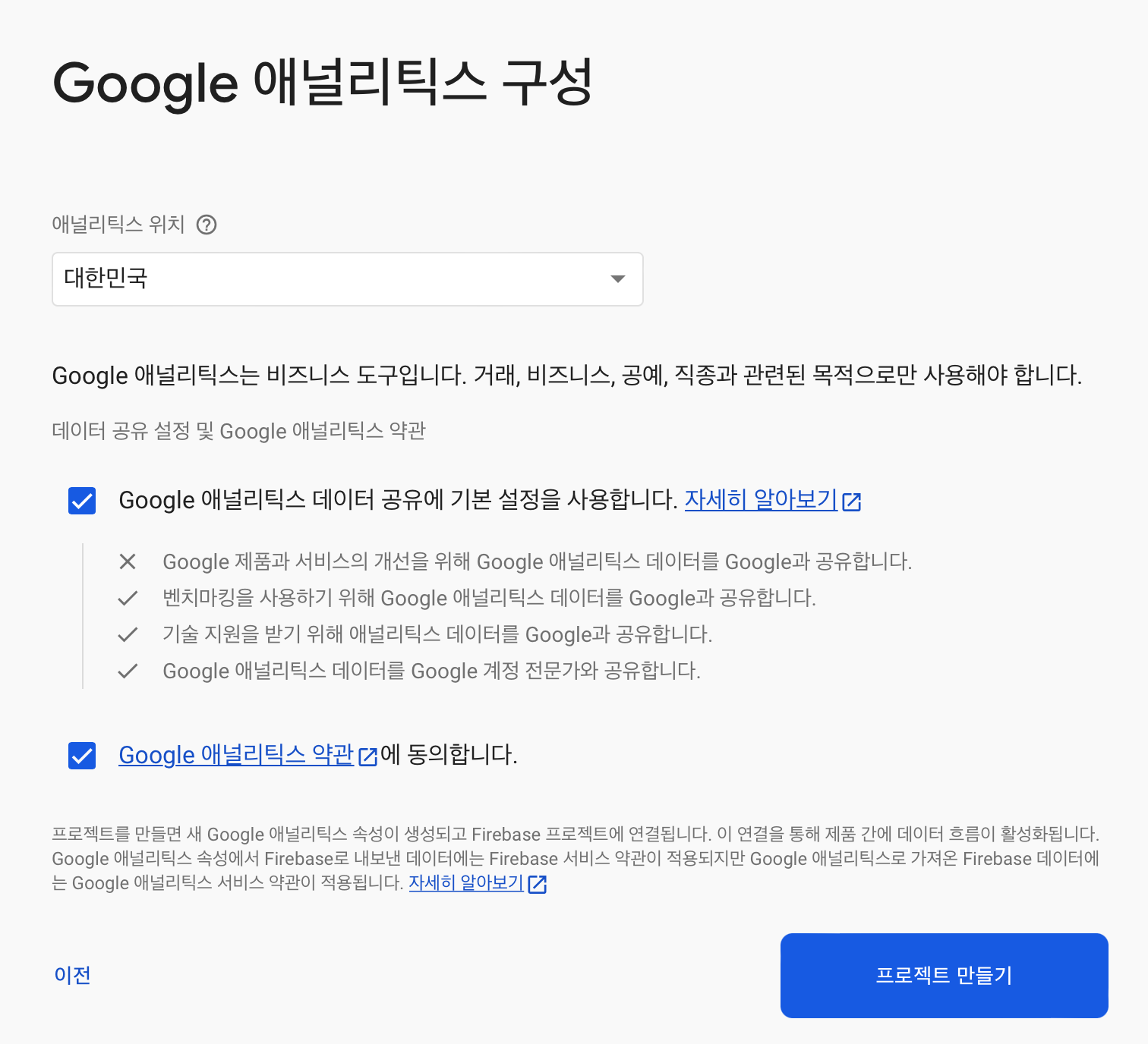 1. firebase 에서 프로젝트 생성
