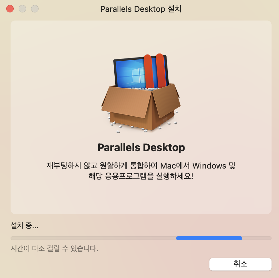 잠시후 나오는 화면 입니다. 해당 화면을 보시면 알수 있듯이 Window11 다운로드 및 설치 입니다. 설치를 위해서 자동으로 내부에서 다운로드 하게 됩니다. Window 설치 를 눌러주시면 됩니다. 설치가 진행되고 윈도우 설치 까지 진행됩니다. 패러렐즈를 그냥 써보셔도 괜찮습니다만 우리는 윈도우 iso 파일이 필요한 것이었죠. 설치 되고 적당히 타이밍 봐서 꺼주시고 다운로드 폴더에 가보겠습니다.