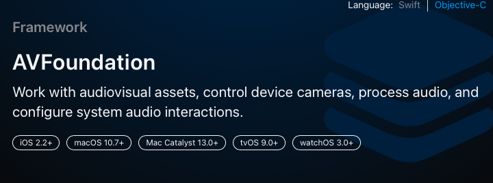 https://developer.apple.com/documentation/avfoundation/audio_playback_recording_and_processing