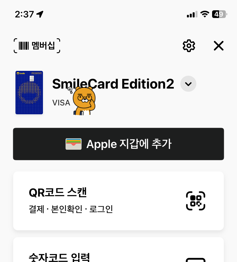 바로 이 부분 Apple 지갑에 추가로 들어가겠습니다.