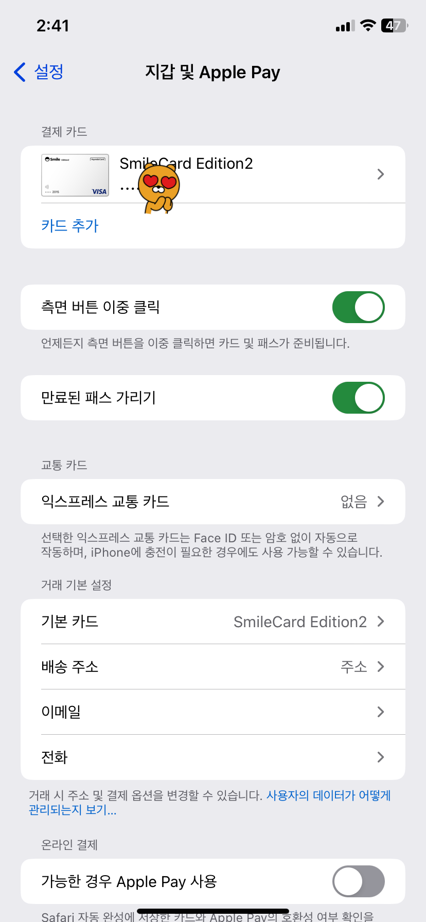 꼭좀 교통카드 기능도 빨리 해결주었으면 좋겠습니다.