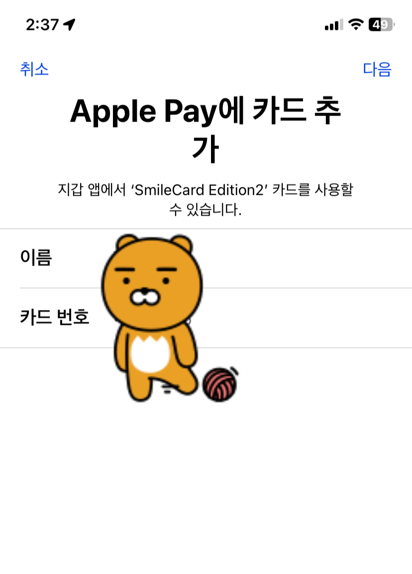 카드 추가 하기가 나오면 다음을 눌러줍니다.
