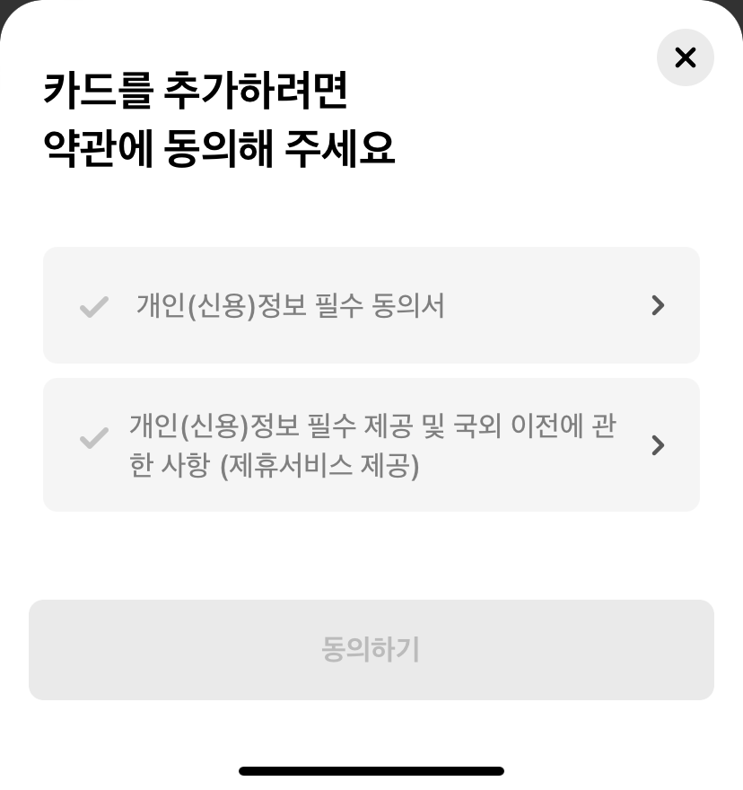 몇가지 약관 및 동의를 진행합니다.
