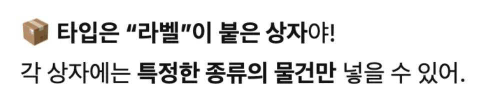 예를 들어 우리가 name 이라는 라벨이 붙은 상자를 꺼냈는데 막상 꺼내고 보니 그 안에 숫자가 들어있다면?