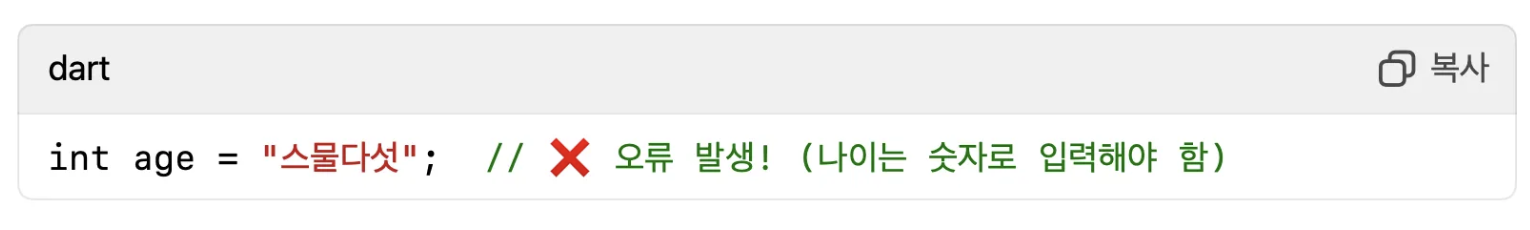 이걸 dart에서는 int와 double 이라는 타입으로 나뉠수 있어요.