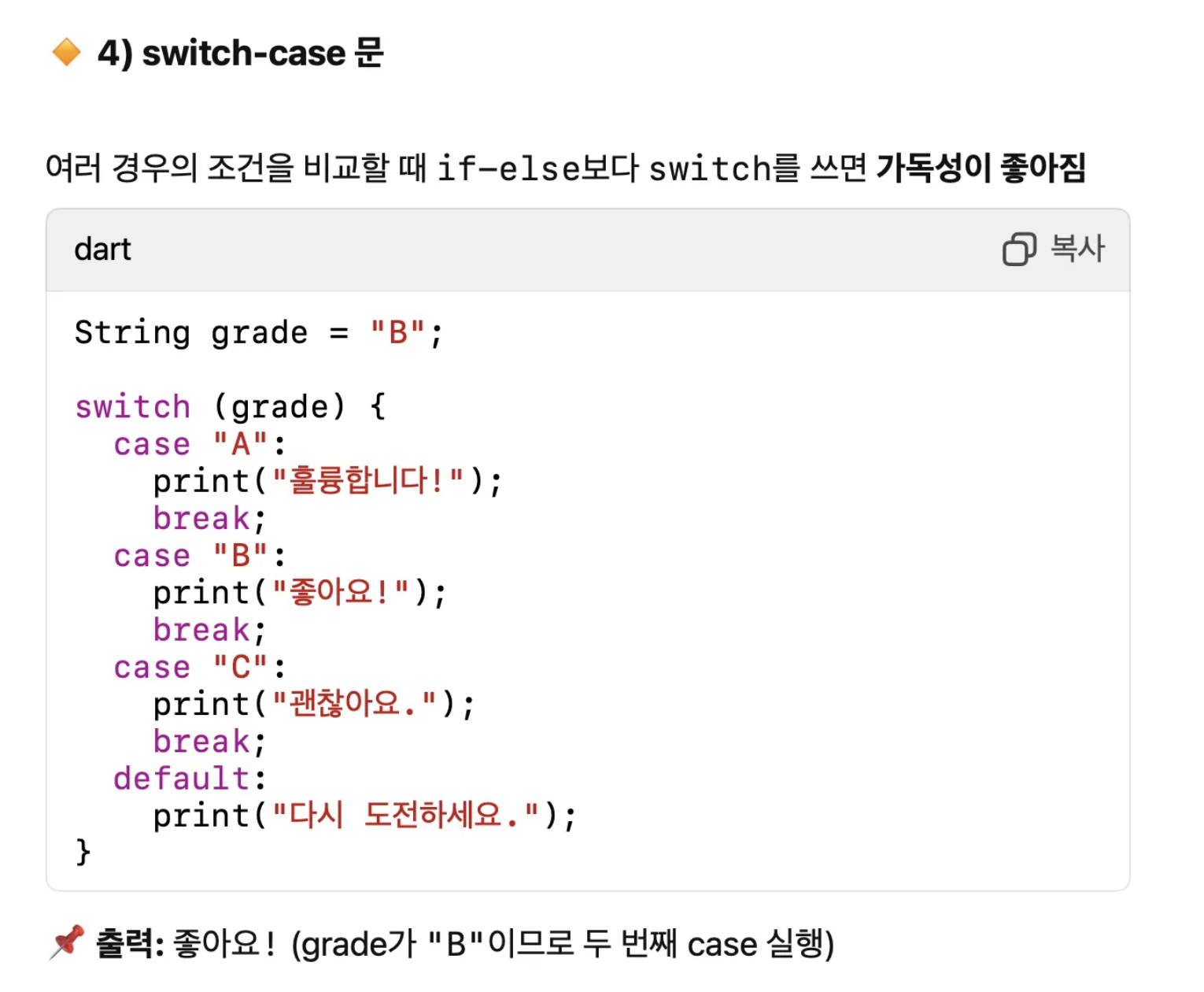 switch case 문은 참고만 해두도록 하세요. 우선은 if문을 중심으로 예제를 실행할거에요.