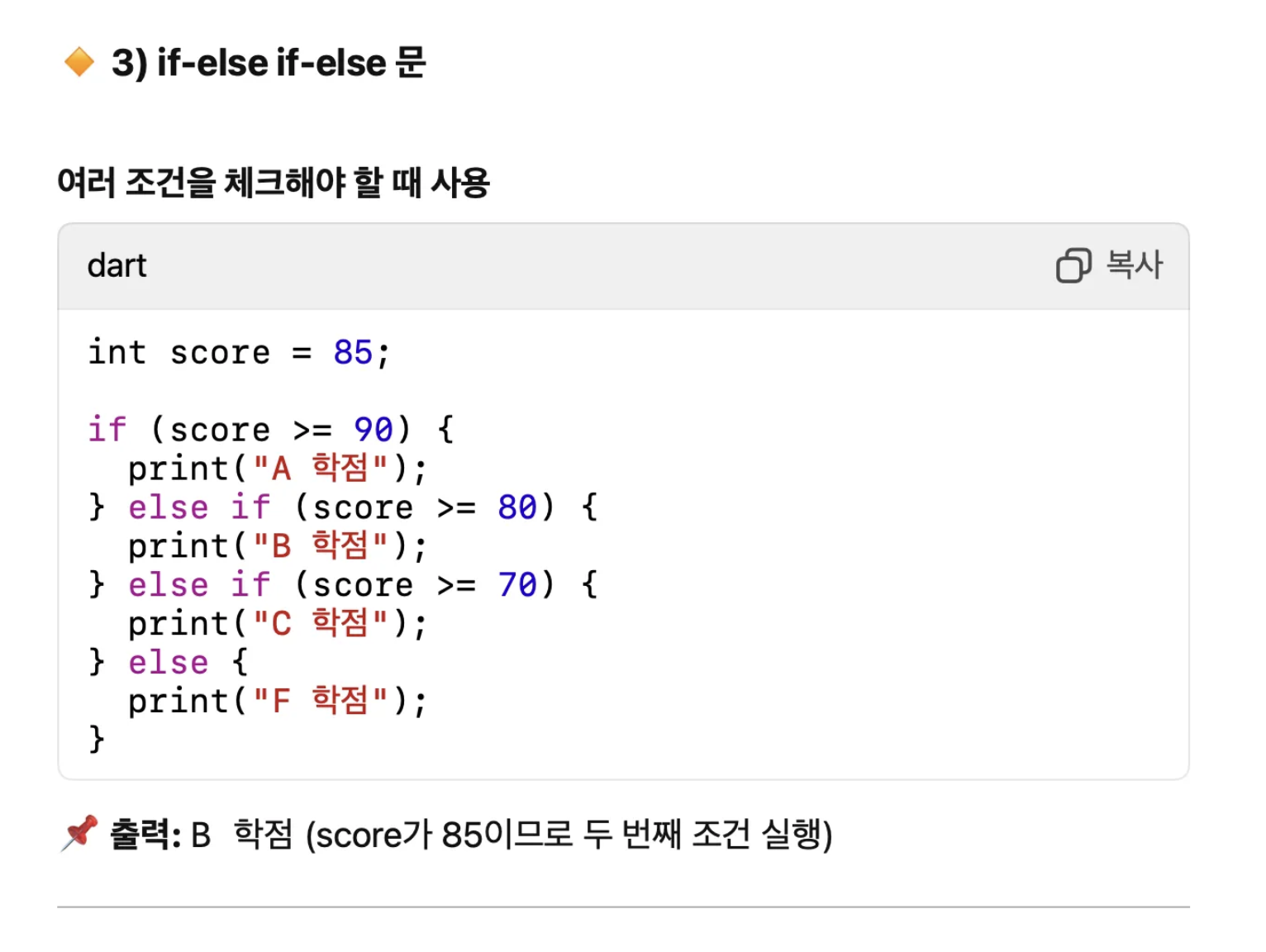if 와 함께 쓸수 있는 else와 else if 를 통해서 상황에 맞는 명확한 제어 블록을 만들수 있어요.