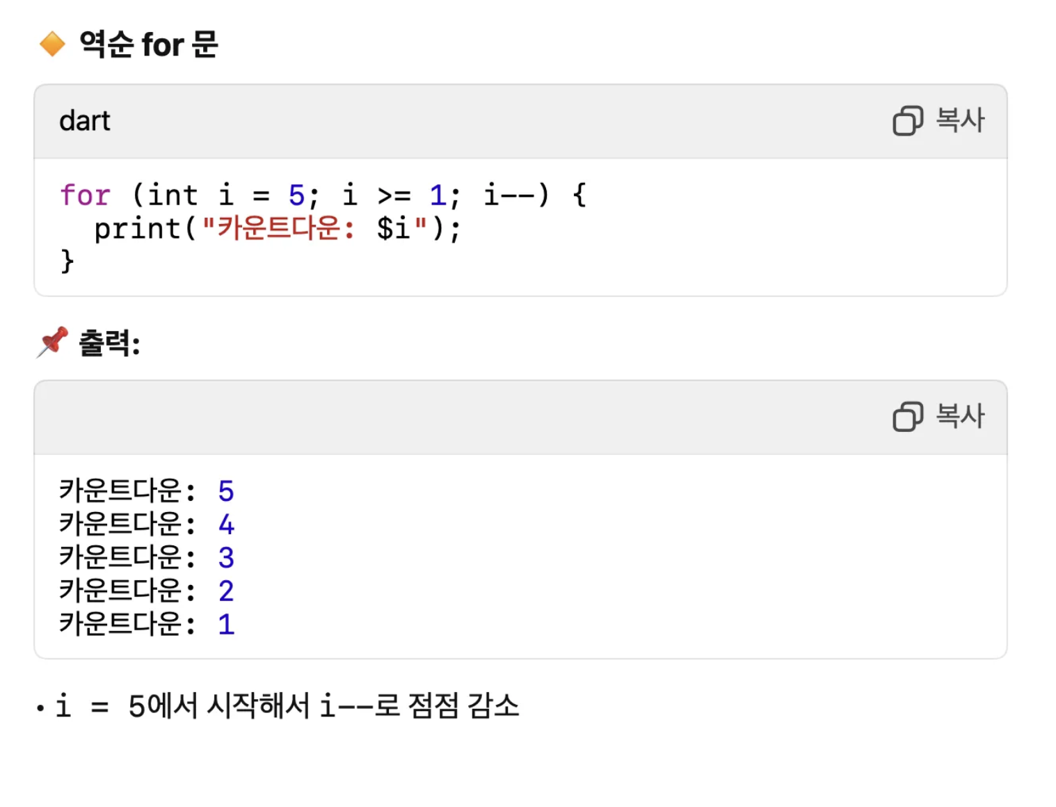 조금 응용을 해볼께요. 그럼 숫자를 역순으로 출력할수도 있지 않을까요?