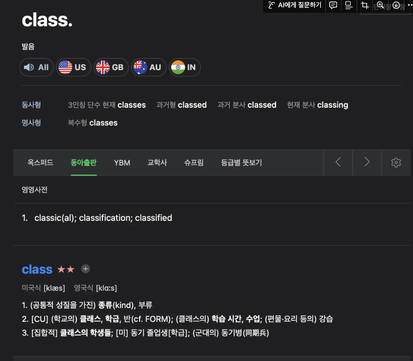이상한 단어가 등장해서 당황하셨을거라 생각이 드네요. 우선 class의 뜻을 한번 살펴보겠습니다.