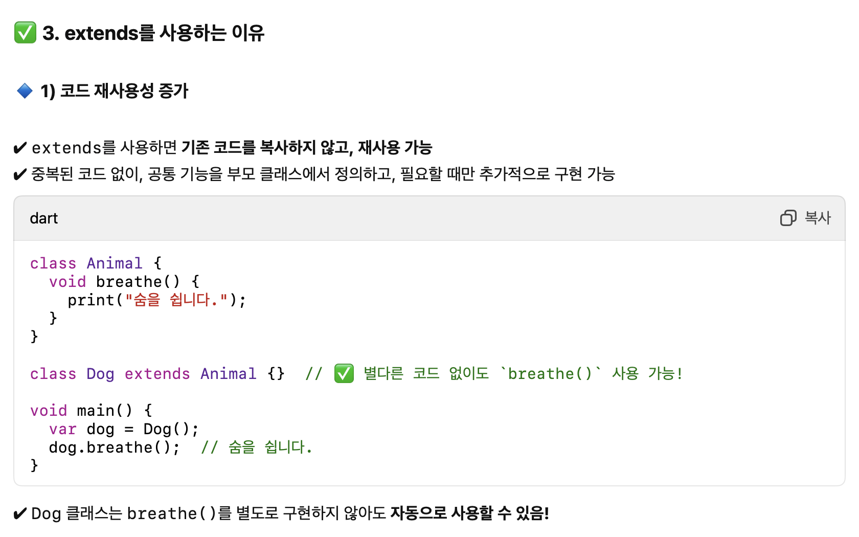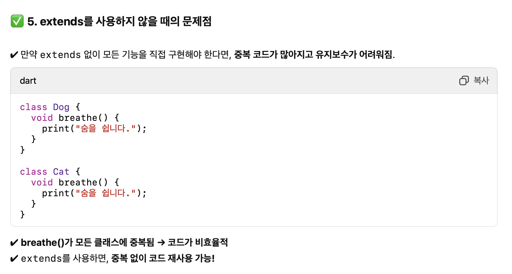 확장의 기능을 사용하면 Dog, Cat 친구들에게 굳이 또 숨쉬는 기능을 만들어줘야 할 필요가 없습니다.