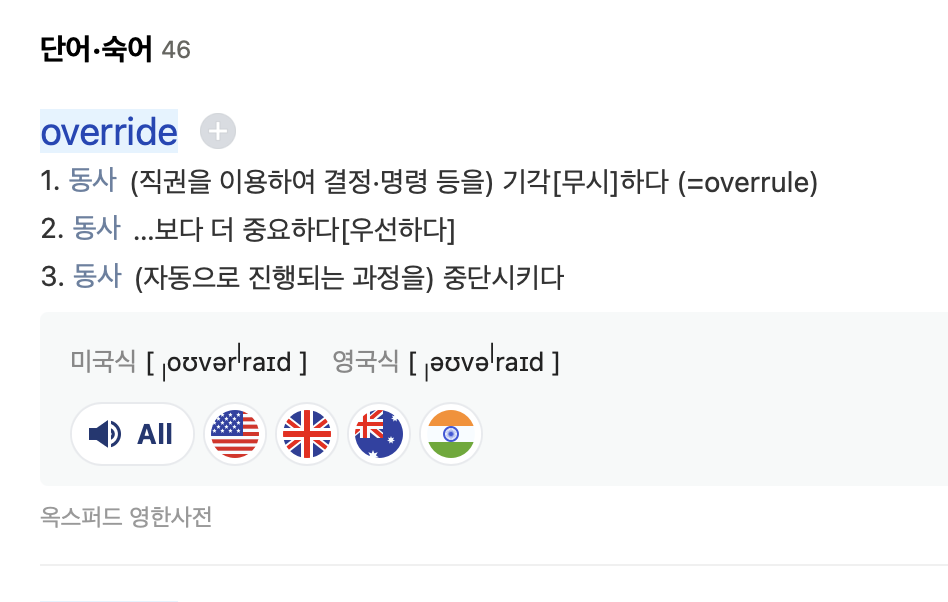 여기서 필요한것이 바로 override(재정의) 라는 키워드 입니다.